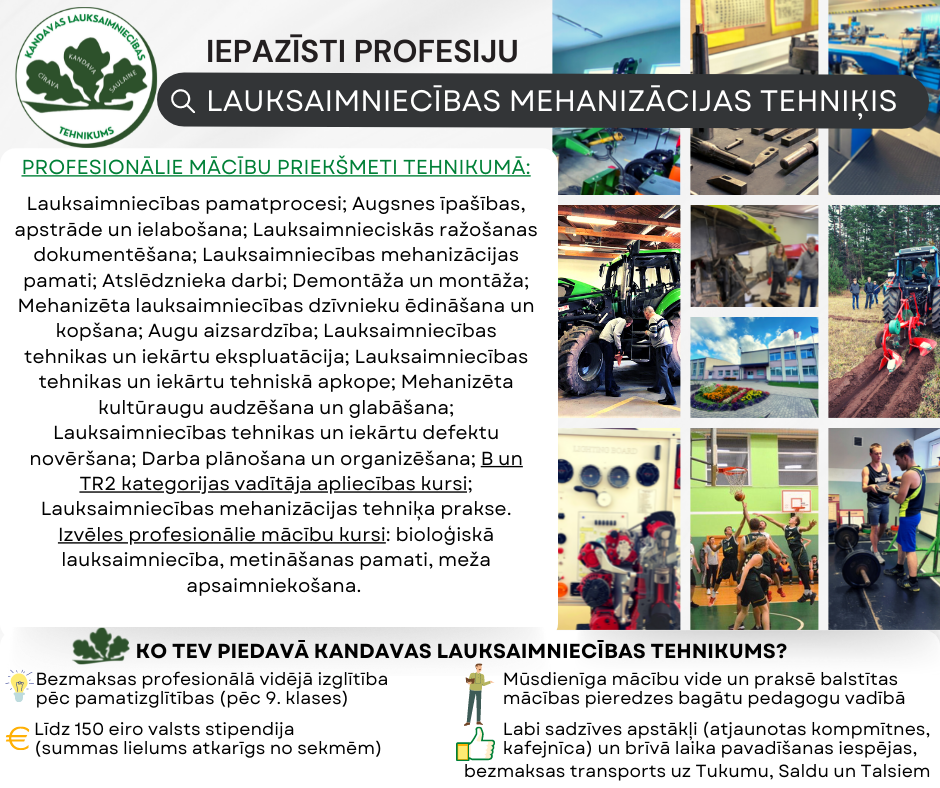 Vai zināji, ka Kandava ir vienīgā pilsēta Kurzemē, kur vari mācīties par Lauksaimniecības mehanizācijas tehniķi?