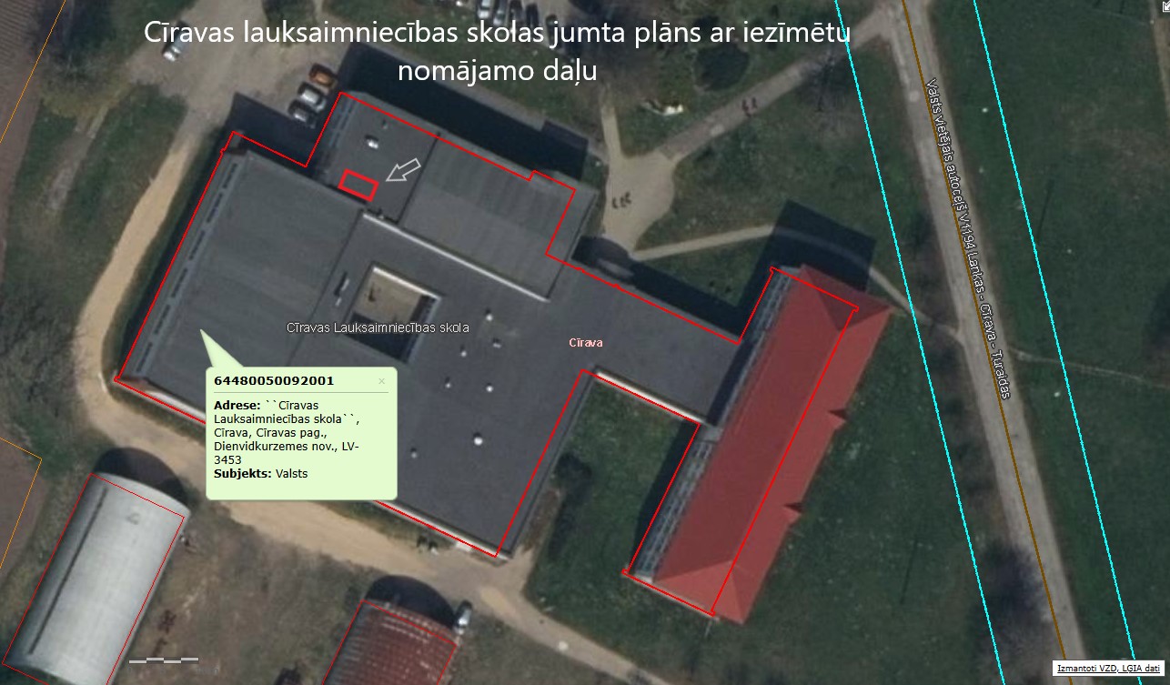 | 13.01.2026. | Nomas tiesību izsole par Cīravas lauksaimniecības skolas “Mācību korpuss” telpas un jumta daļa” | 2026.gada 26. janvāris, plkst. 11:00 | Aktīvs | Kandavas Lauksaimniecības tehnikuma Cīravas teritoriālās strultūrvienības saimniecības daļas vadītājs Raimonds Horns, tālrunis: 29119304, e-pasts: rhorns@inbox.lv |