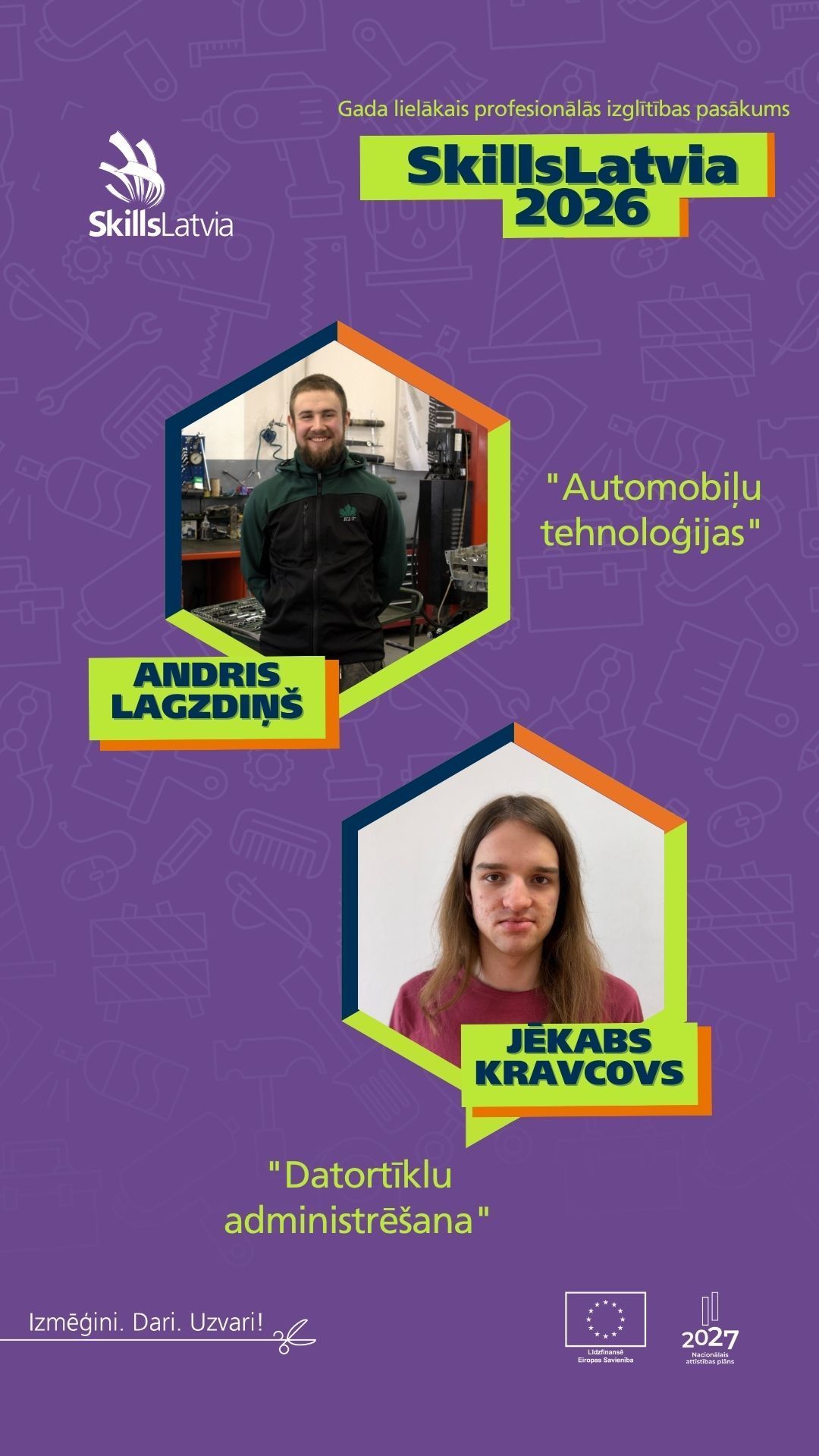 - Andris Lagzdiņš, kurš startēs prasmju konkursā “Automobiļu tehnoloģijas”.