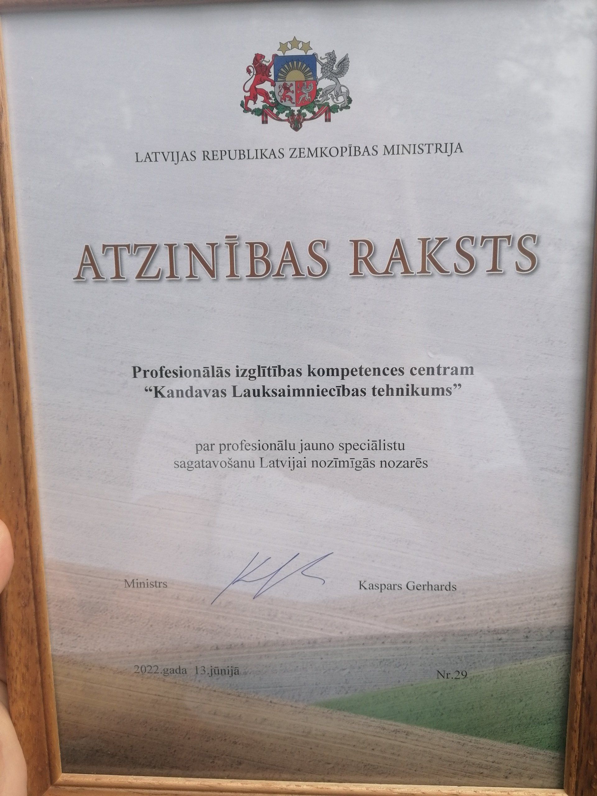Īpašs paldies Zemkopības ministrijai par Kandavas Lauksaimniecības tehnikumam piešķirto Atzinības rakstu – jūsu atbalsts mums ir nozīmīgs!
