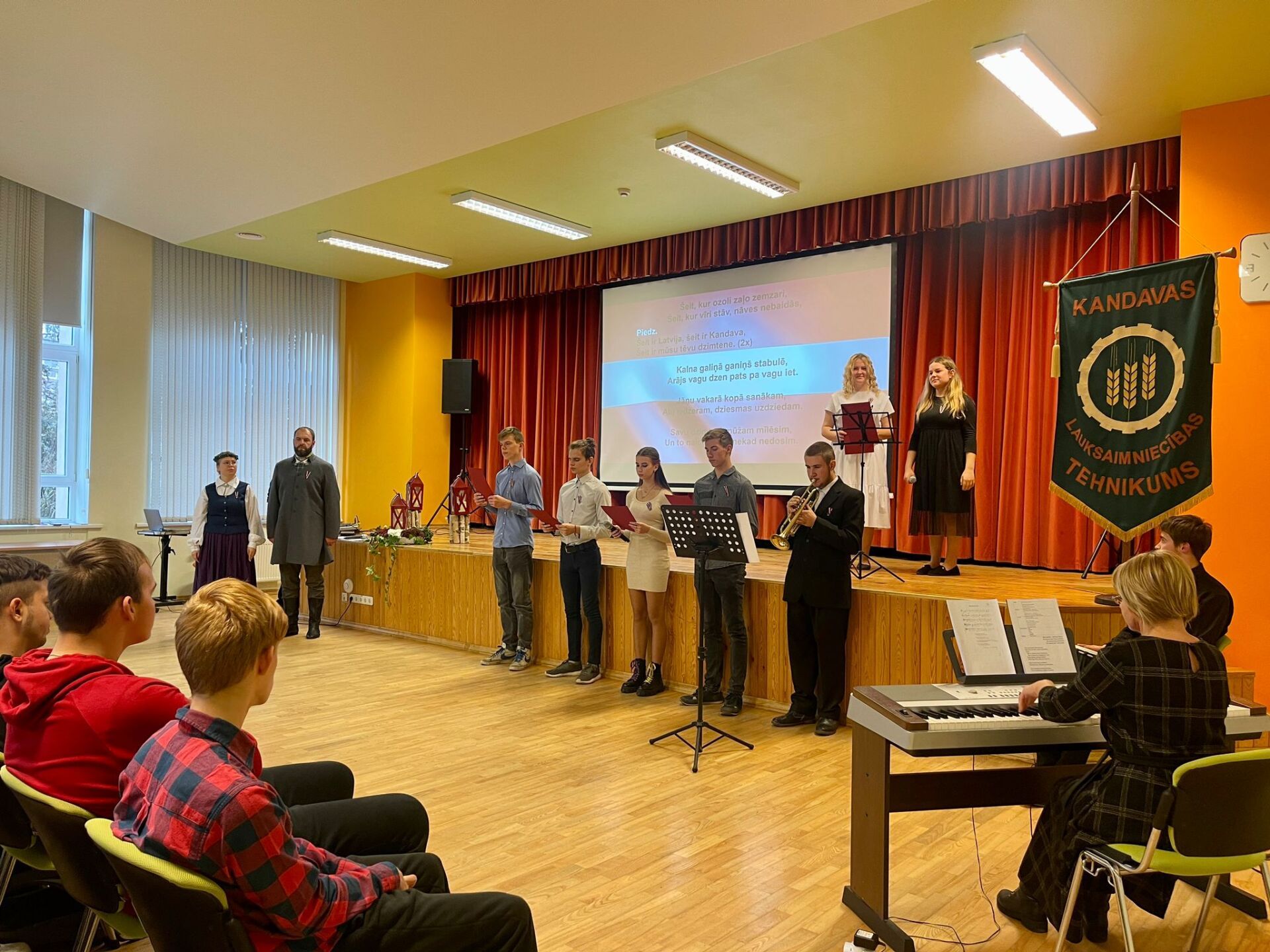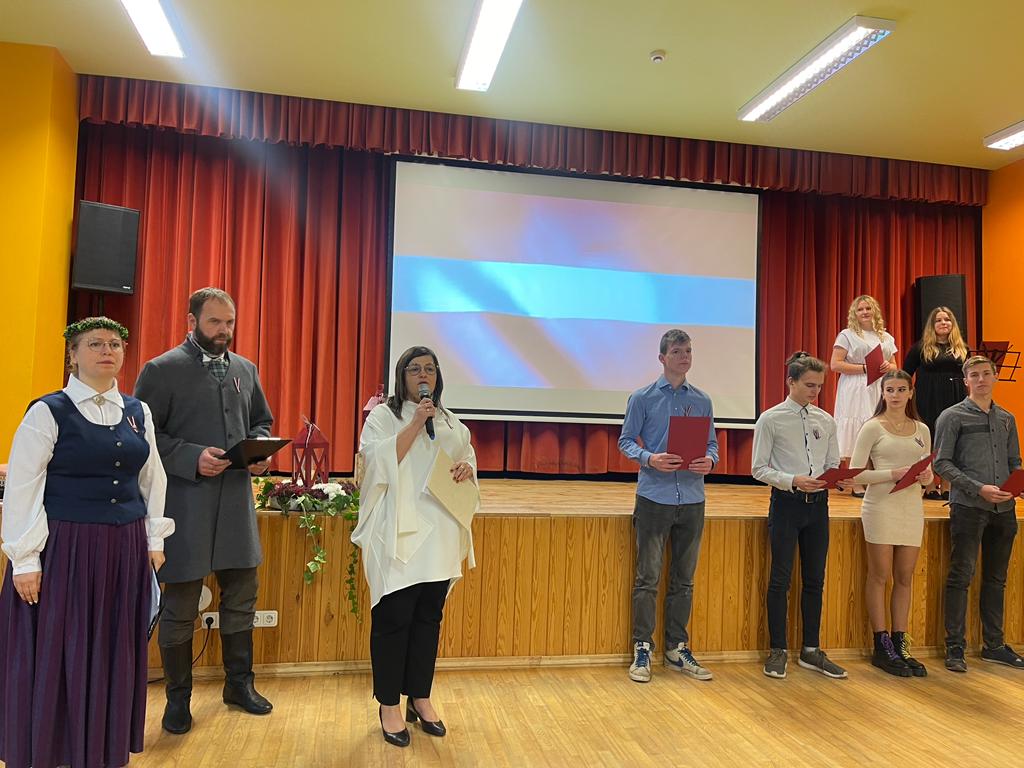 Dace Rozentāle, Kandavas Lauksaimniecības tehnikuma direktore: "Šogad svētki, Latvijas 104. dzimšanas diena, būs mazliet citādāka. Kara darbība Ukrainā mums liek mazliet savādā paskatīties uz dzīvi… Šodien būs mazāk greznības un spožuma, bet dziļi sirdī svētki varbūt būs pat patiesāki… Mēs šodien varam būt lepni un priecīgi, ka svētkus varam sagaidīt brīvā valstī. Pirms 104 gadiem tā bija apbrīnojama drosme iestāties par savu neatkarīgu valsti, par spīti nelabvēlīgiem apstākļiem un daudzu neticībai. Mēs esam šīs drosmes mantinieki. Tāpēc turēsim augsti godā viņu likto vīziju par Latvijas nākotni. Viņu liktais Latvijas pamatakmens bija taisnīgums.